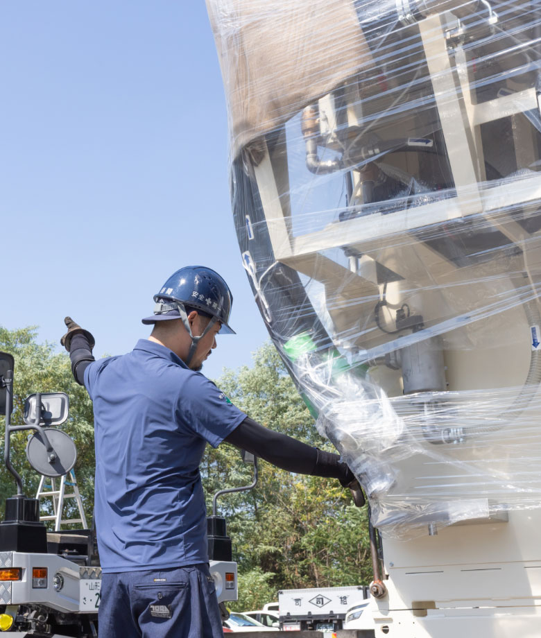 当社は、工場や医療現場の大型機械・重量物・精密機械の運搬から搬入、据付、保管までをワンストップで提供。